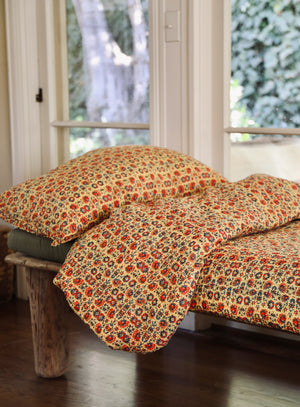 New for Spring '25 and constructed in our soft, lightweight fabric in our new custom print - Cordoba. Produced in limited runs. Duvet covers close with vintage shell buttons. Pillow cases - set of 2 sold separately. Duvet covers sold separately. 100% Cotton. Wash cold, line dry or tumble dry low heat. Made in California.