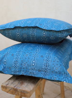 Set of 2 pillow covers. 100% Cotton. Wash cold, line dry or tumble dry low heat. Made in California.