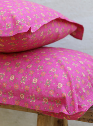 Set of 2 pillow covers. 100% Cotton. Wash cold, line dry or tumble dry low heat. Made in California.