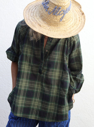 The Atlin Top has pleats at the shoulders, balloon sleeves, shirred cuffs and a roomy a-line cut. Vintage shell buttons, french seam construction, pulls over. 100% cotton. Wash cold, line dry. Made in California.